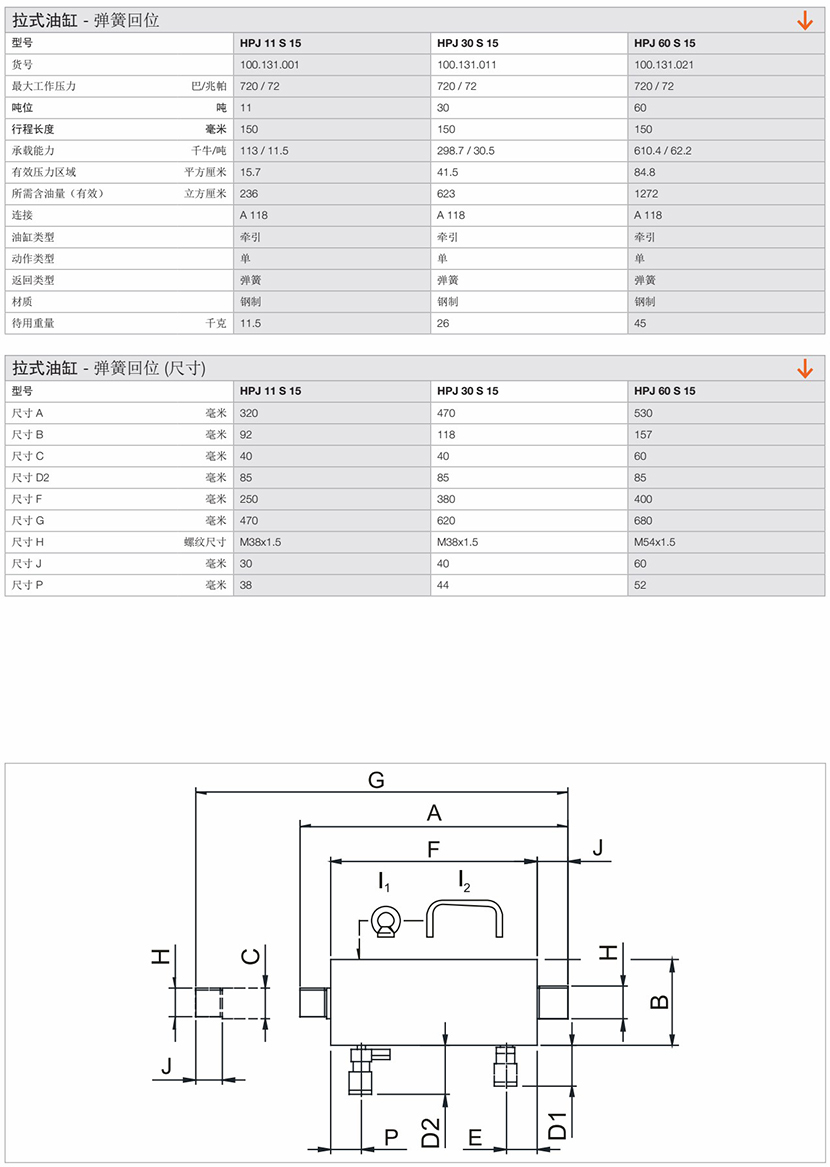 最大工作壓力: 720巴/72兆帕 第一段行程長度: 150 毫米