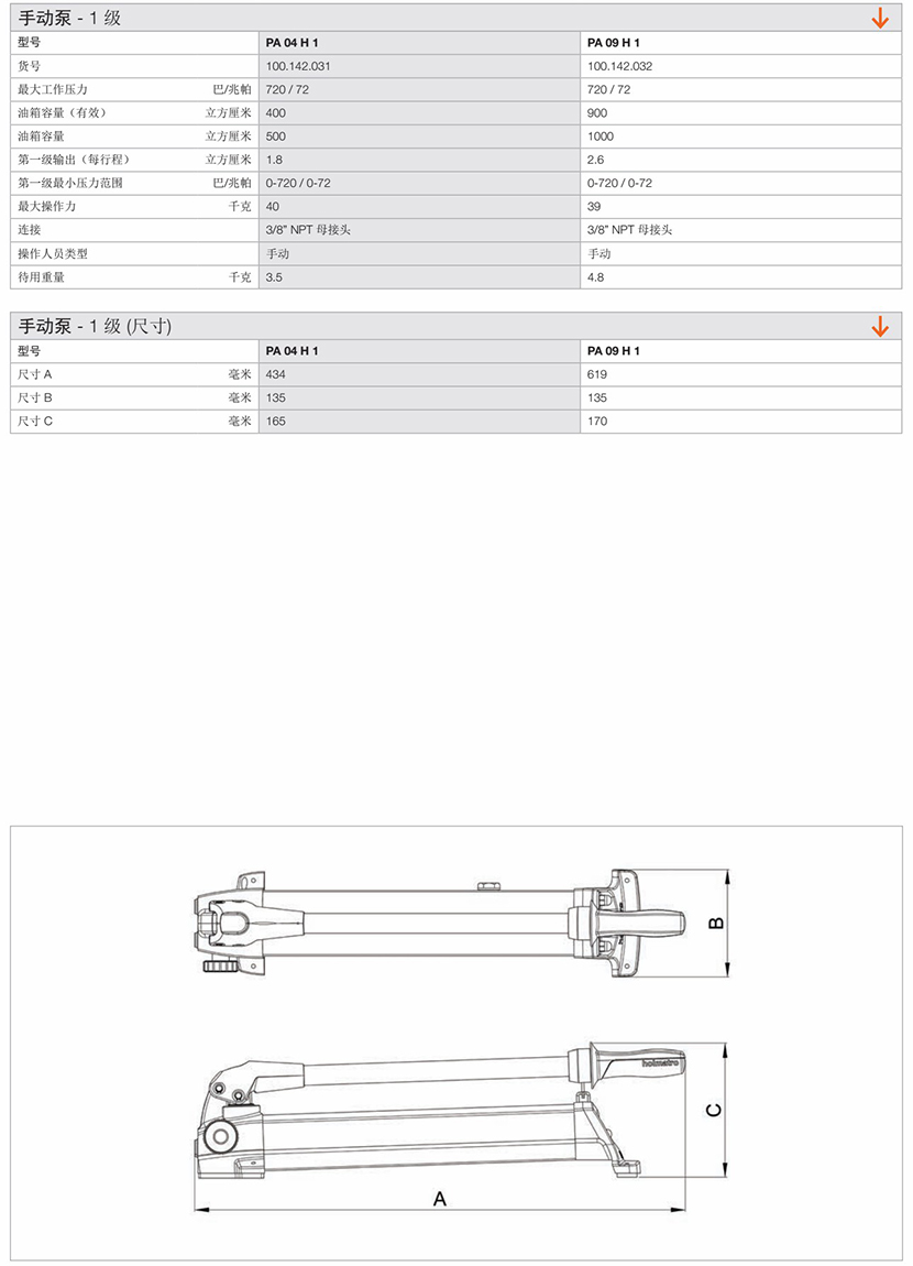 最大工作壓力: 720/72 巴/兆帕 油箱容量: 400 立方厘米