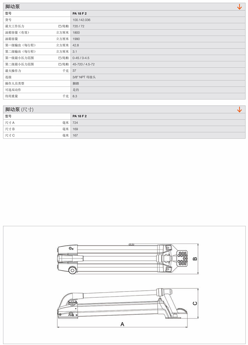 | 最大工作壓力: | 720/72 巴/兆帕 | 油箱容量: | 1800 立方厘米 |