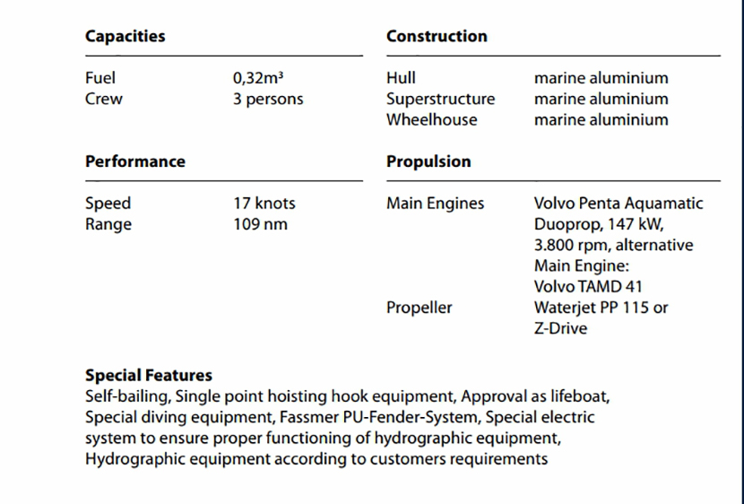 發動機功率: 147kw 推進裝置: Waterjet PP 115 or Z-Drive