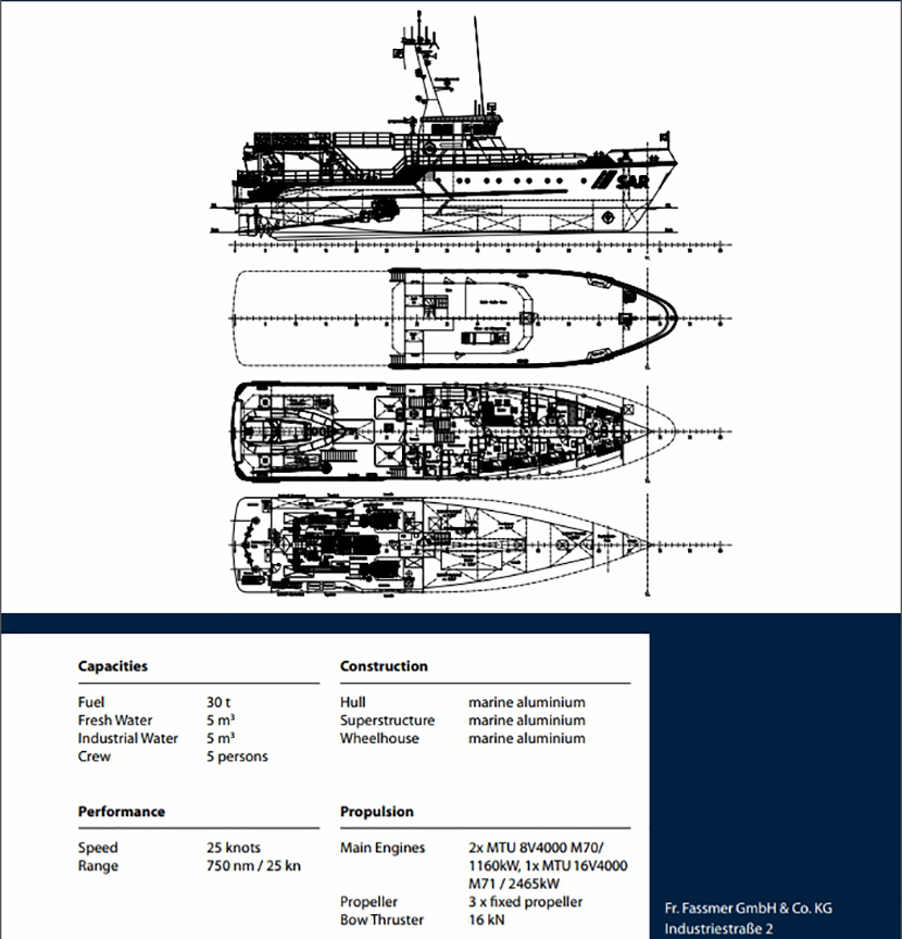 推進裝置: 3 x fixed propellers 型寬: 7.80m