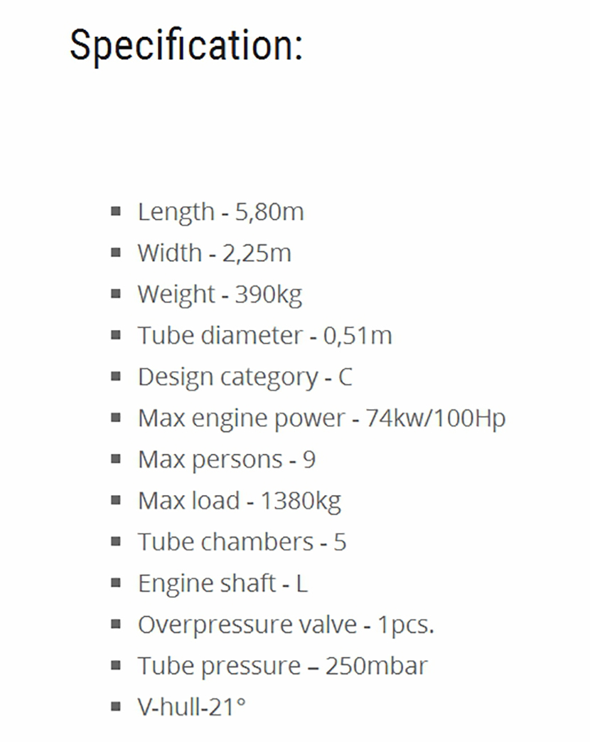 | 總長: | 5.80m | 最大乘員: | 9p |