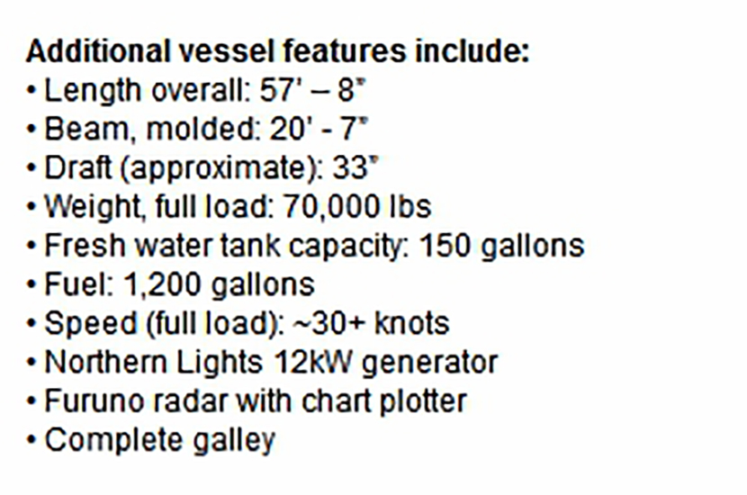 | 總長: | 19.2m | 燃油容量: | 1200 gallons |