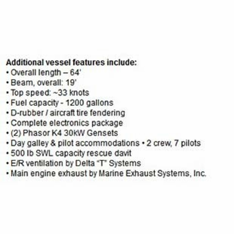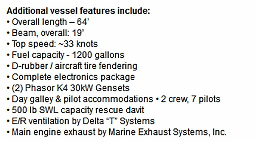 | 總長(zhǎng): | 21m | 燃油容量: | 1200 gallons |