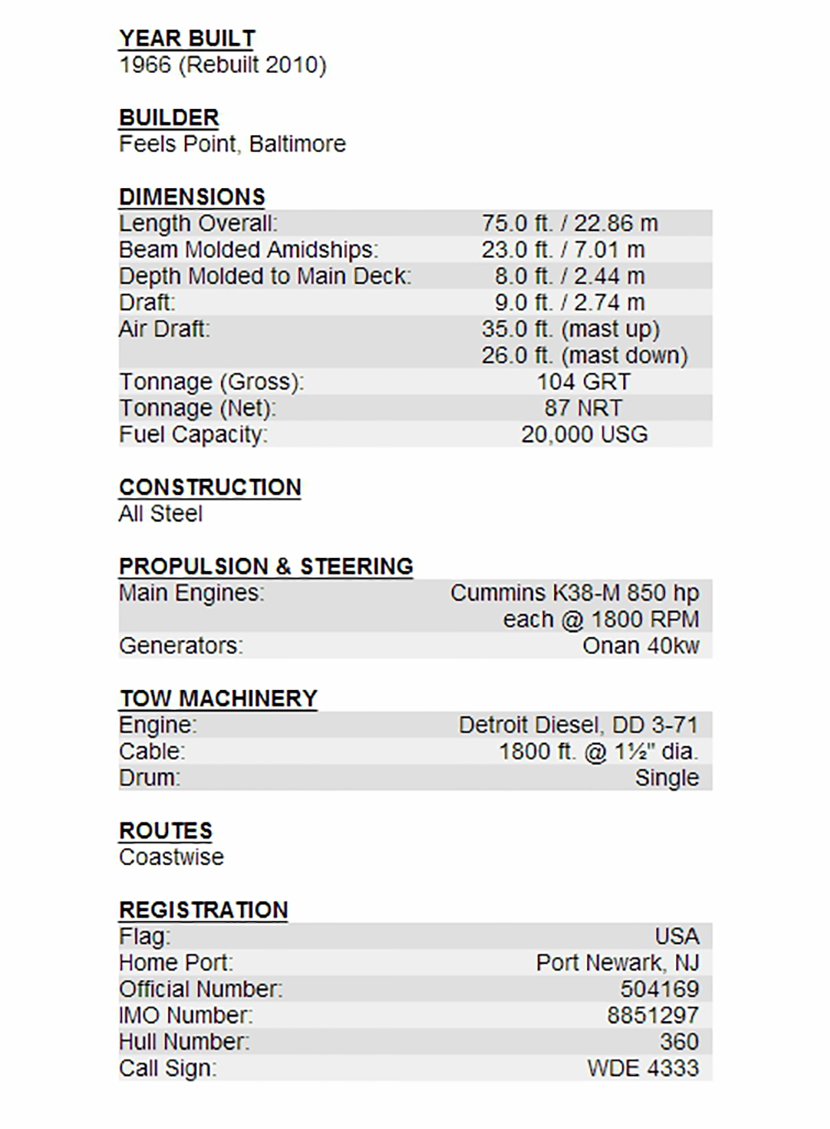 總長: 22.86m 發動機功率: 2×850hp at 1800rpm
