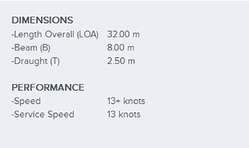 | 型寬: | 8.0m | 吃水深度: | 2.5m |