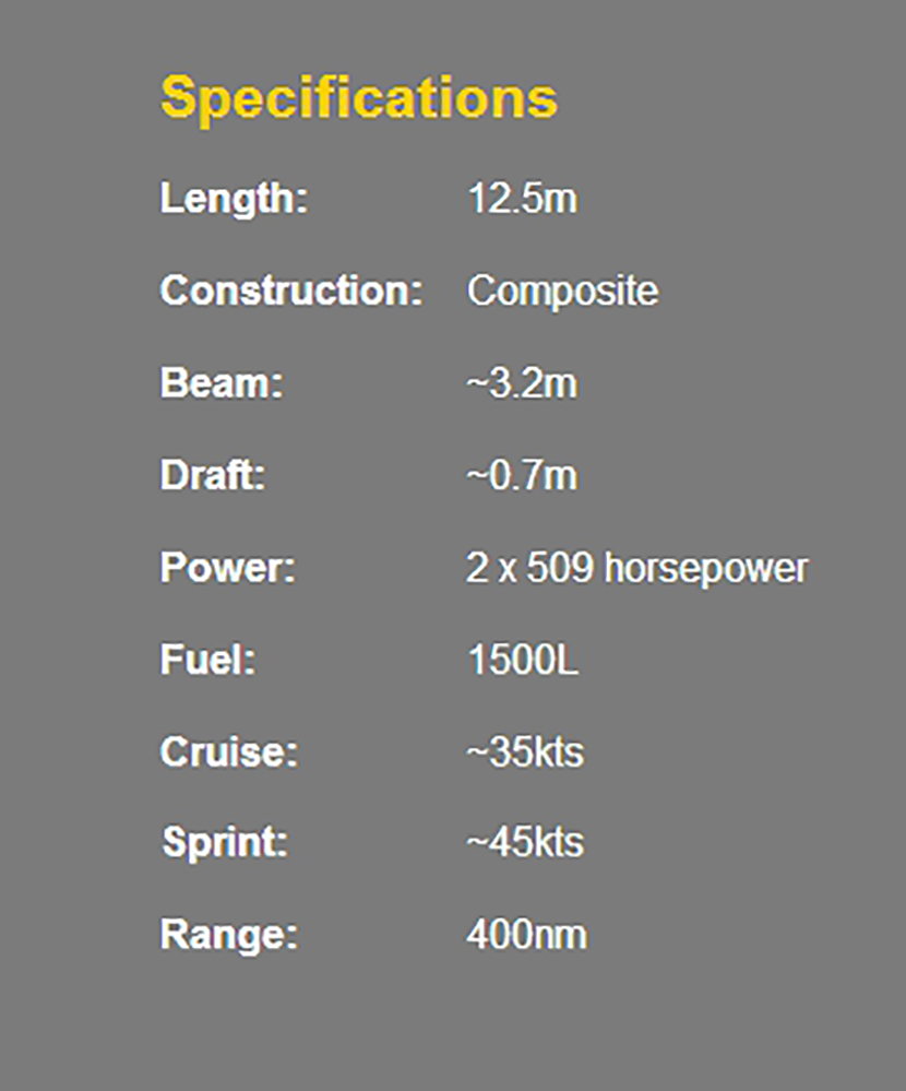 | 總長: | 12.5m | 航速: | 35kn |
