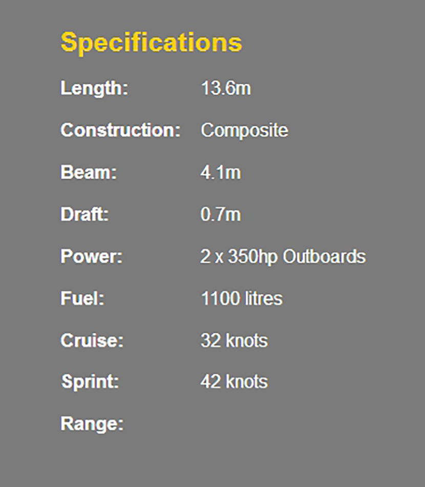 總長: 13.6m 航速: 32kn