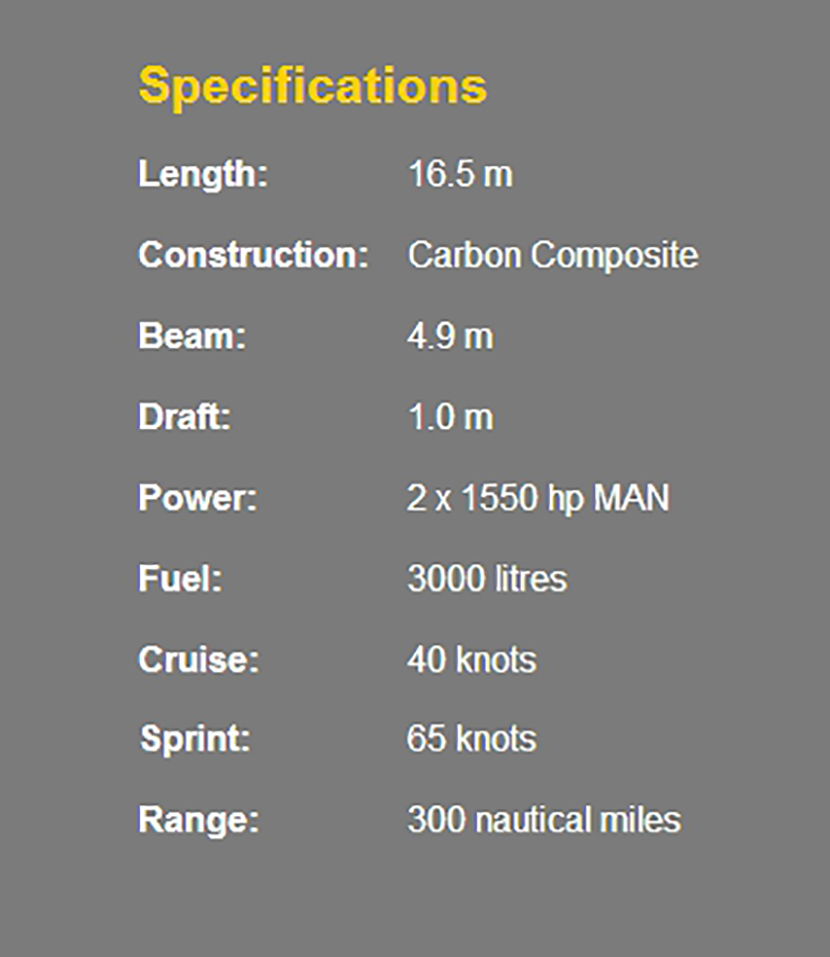總長: 16.5m 航速: 40kn
