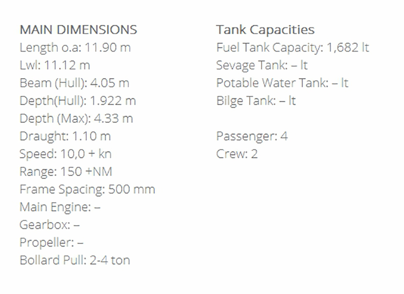 | 總長: | 11.90m | 航速: | 10kn |