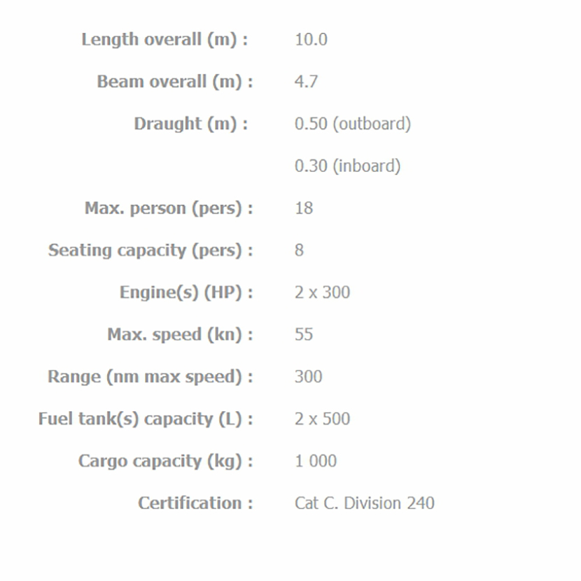 | 最大乘員: | 8p | 發(fā)動機功率: | 2×300hp |