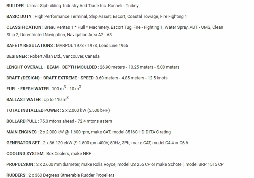 發動機功率: 2×2000kW 型寬: 13.25m