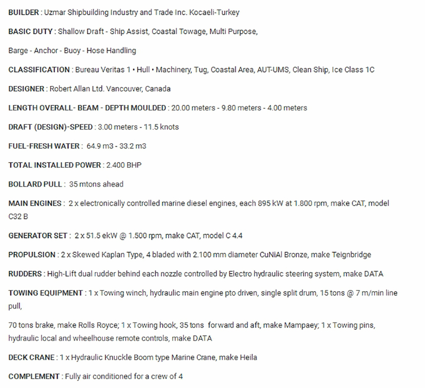 | 發(fā)動機功率: | 2×895kW at 1800 rpm | 型寬: | 9.80m |