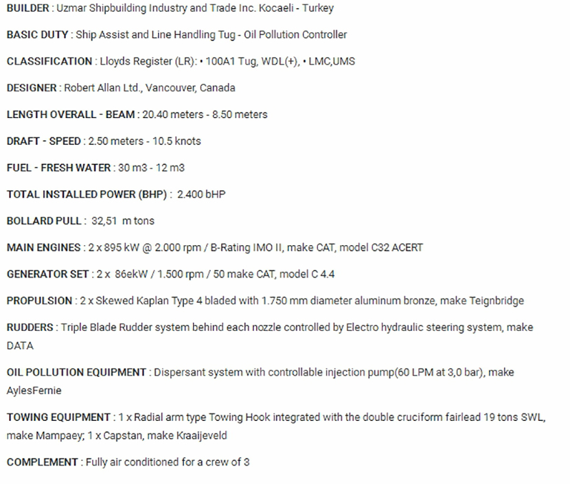 | 發(fā)動(dòng)機(jī)功率: | 2×895kW | 型寬: | 8.50m |