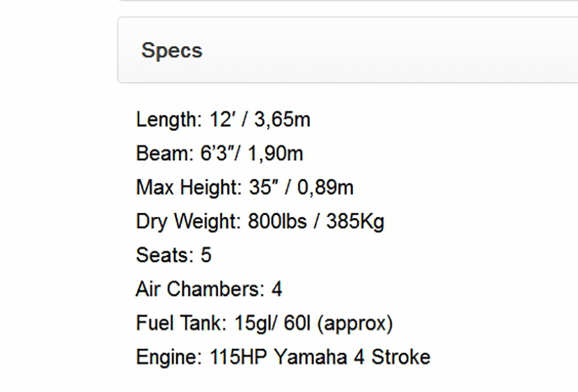 總長: 3.65m 總重量: 385kg
