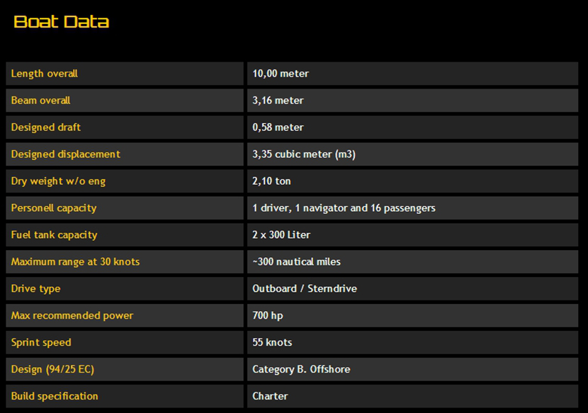 總長: 10.00m 航速: 55kn