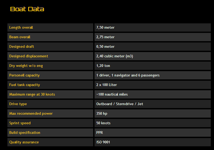 | 型寬: | 2.75m | 吃水深度: | 0.50m |
