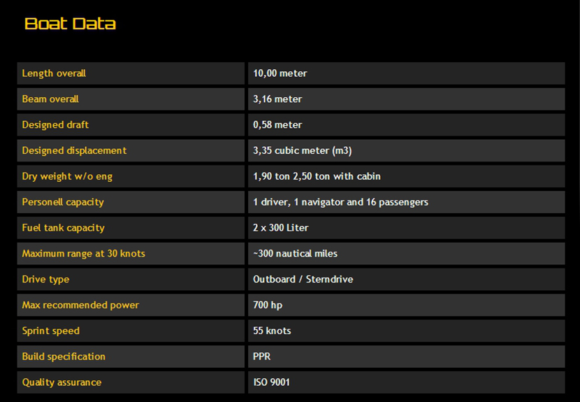 | 總長(zhǎng): | 10.00m | 航速: | 55kn |