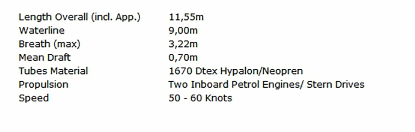 | 總長: | 11.55m | 航速: | 60kn |