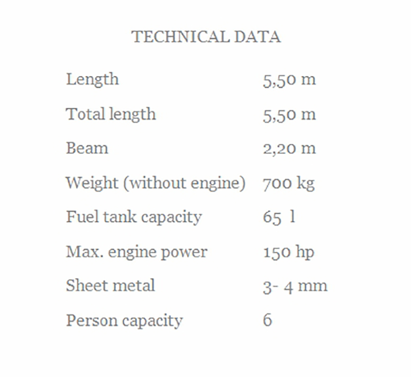 | 總長(zhǎng): | 5.50m | 最大乘員: | 6p |