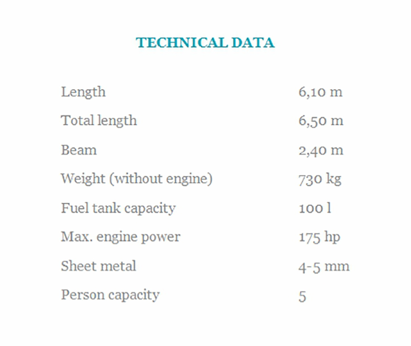 | 總長: | 6.50m | 最大乘員: | 5p |