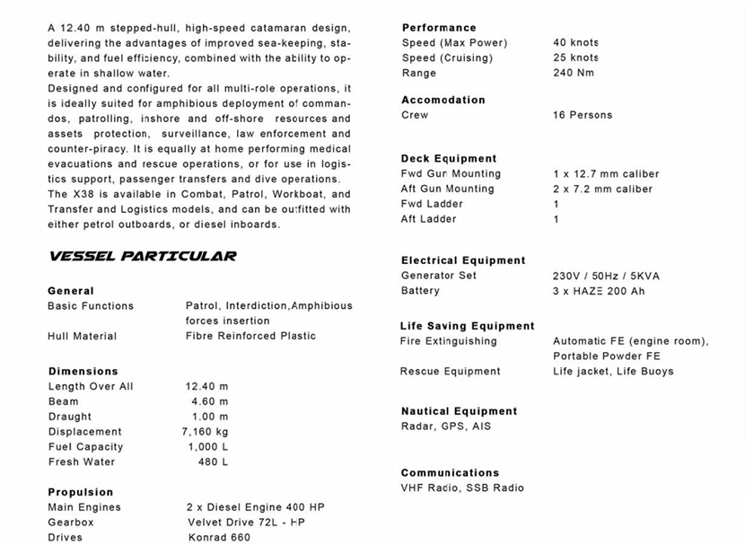 發動機功率: 2x diesel engine 400HP 最大航速: 40kn