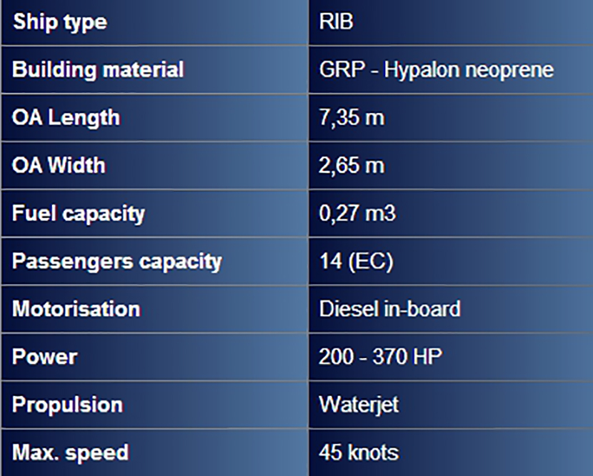 平臺 7.35米剛性船體充氣巡邏艇