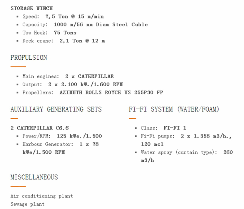 發動機品牌: CATERPILLAR 溢油回收: 3m3