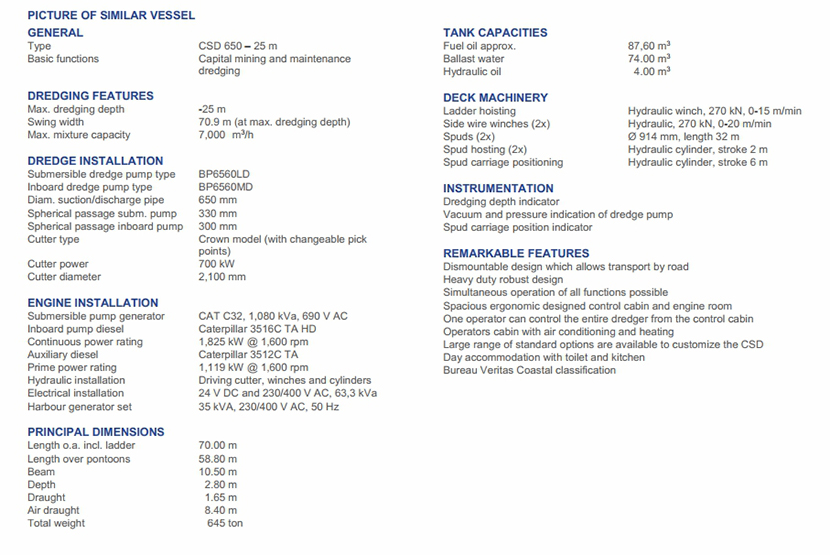 發動機功率: 1825kW at 1600rpm 型寬: 10.50m