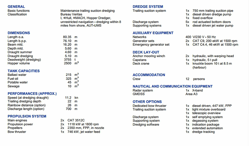 發動機功率: 2×1118kW at 1800rpm 推進裝置: 2×2350mm,FFP