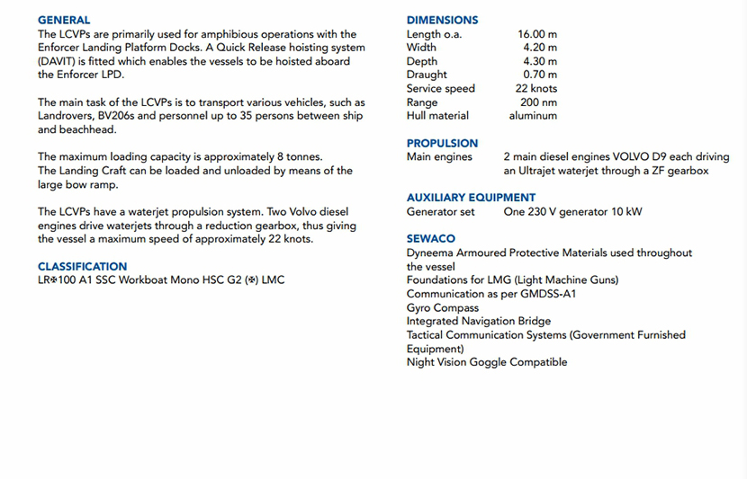 船體材料: 發電機組: 2 main diesel engines VOLVO D9 each driving an Ultrajet waterjet through a ZF gearbox