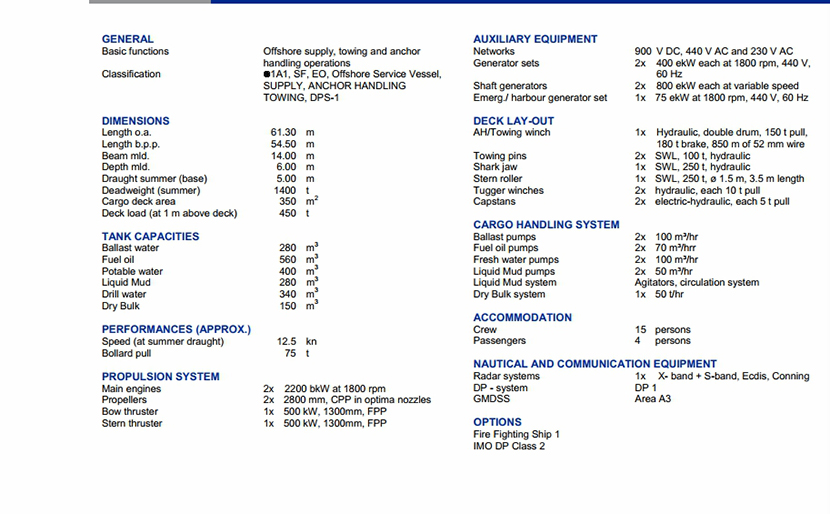 | 發(fā)動機(jī)功率: | 2×2200bkw | 推進(jìn)裝置: | 可調(diào)槳 |