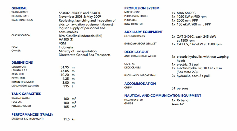 燃油容量: 100m3 發動機功率: 1×1020kW at 900rpm