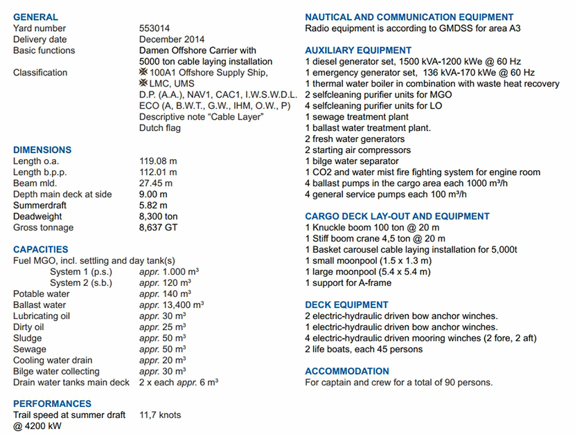 齒輪箱: 2×MAK 8 M25&2×MAK 6 M25 型寬: 27.45m