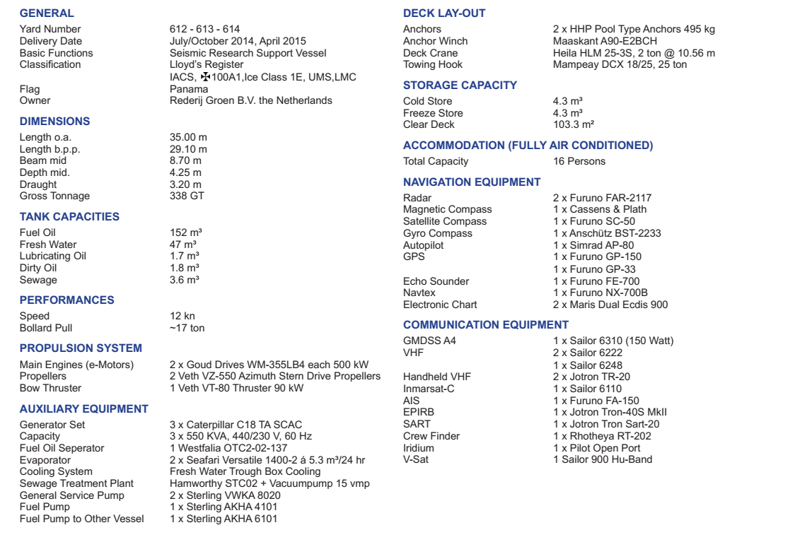 總長: 35.00m 航速: 12kn