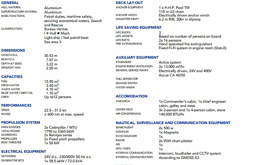總長: 30.53m 航速: 31.5kn