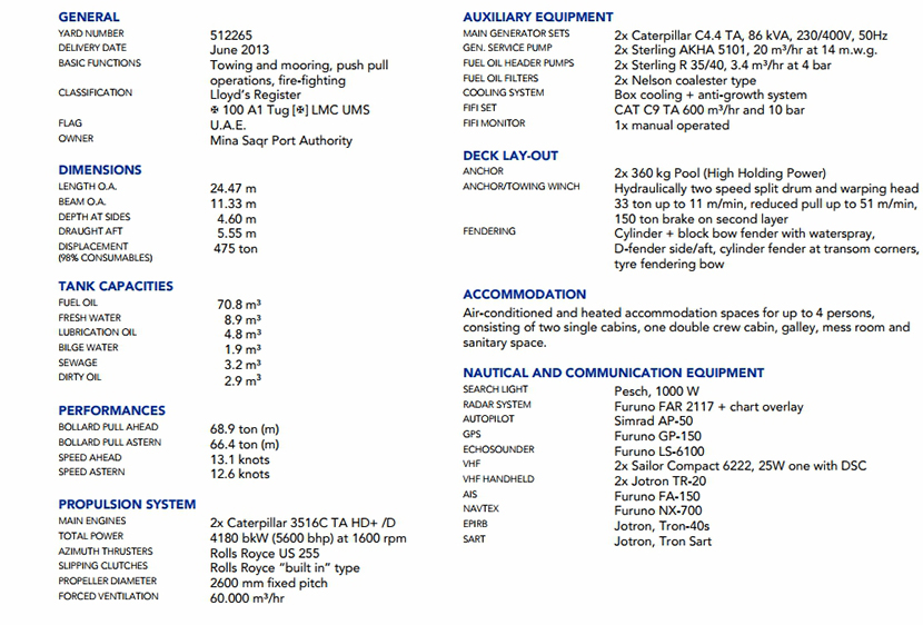 發動機品牌: Caterpilar 3516C HD TA/D 發動機功率: 2×2090 kW at 1600rpm