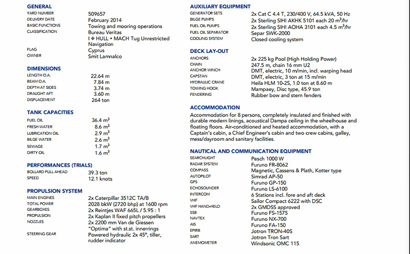 發動機品牌: Caterpilar 3512C TA/B 發動機功率: 2×1014 kW at 1600rpm