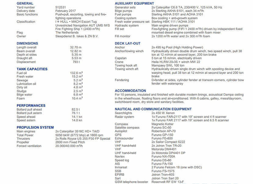 | 發動機品牌: | Caterpilar 3516C HD TA/D | 發動機功率: | 2×2525 kW at 1800rpm |