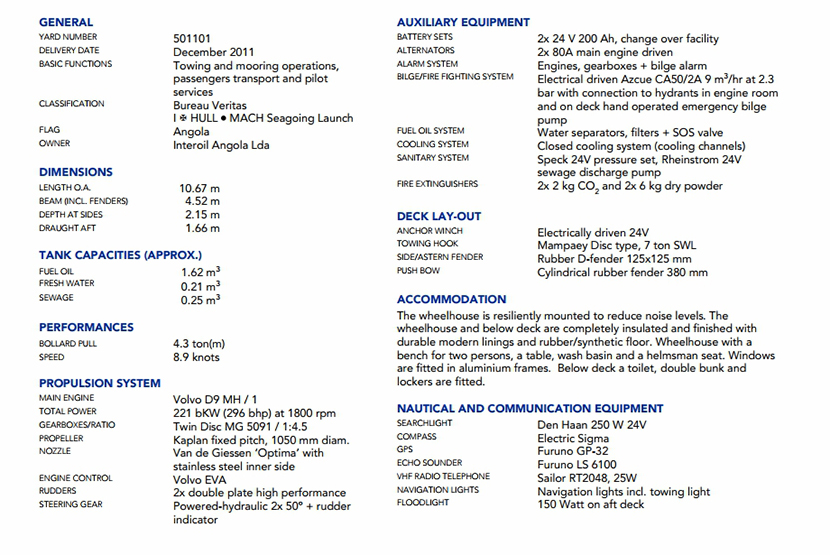 | 發(fā)動機品牌: | Volvo D9MH | 齒輪箱: | Twin Disc MG5091 |