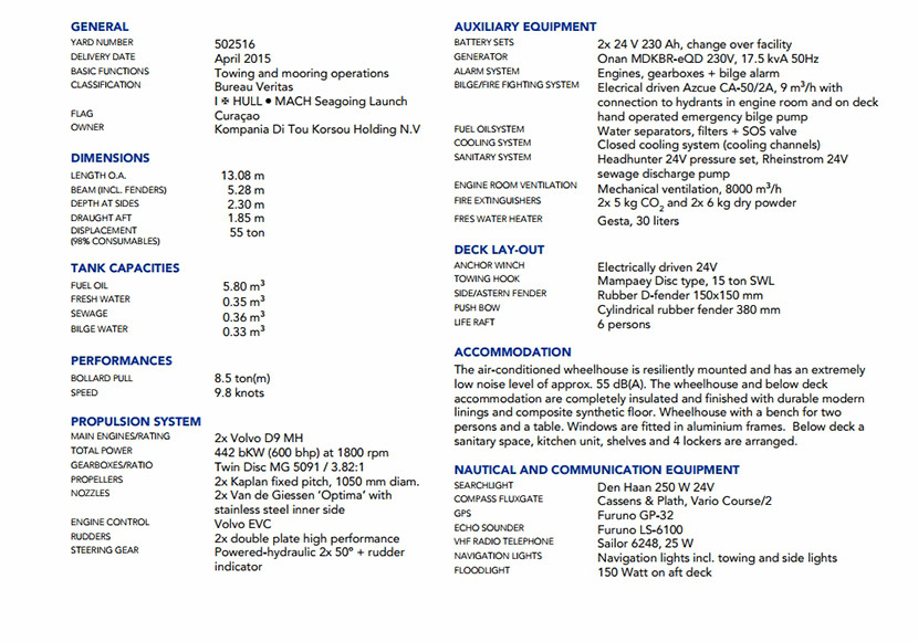 發動機品牌: Volvo D9 MH 齒輪箱: 2×Twin Disc MG5091
