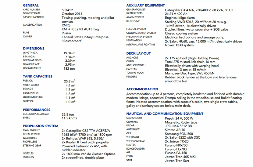 | 發動機品牌: | Caterpilar C32 TTA ACERT/A | 齒輪箱: | 2×Reintjes WAF 665L |
