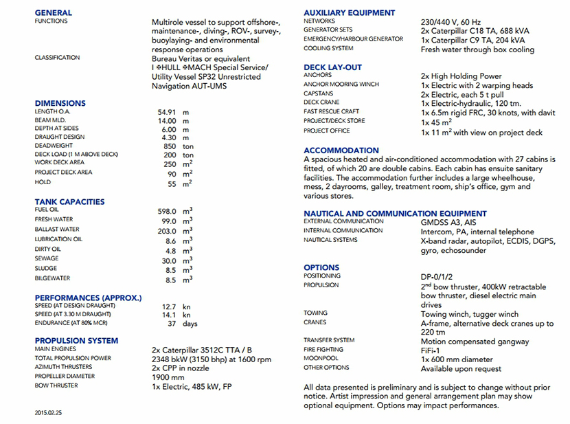 | 發電機組: | 2×Caterpilar 3512C TTA /B | 發動機功率: | 2348bkW at 1600rpm |