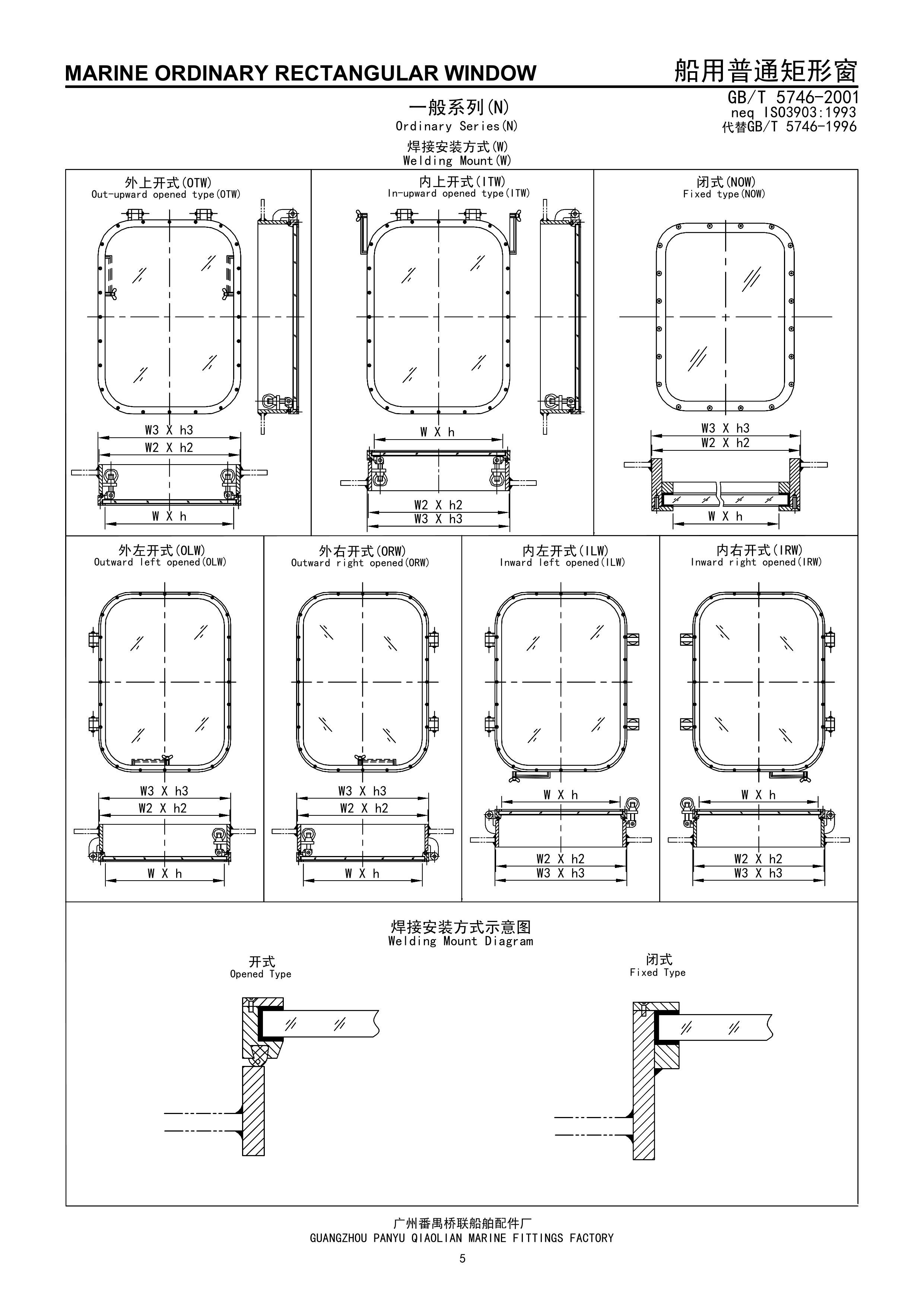 船用焊接安裝式普通矩形窗