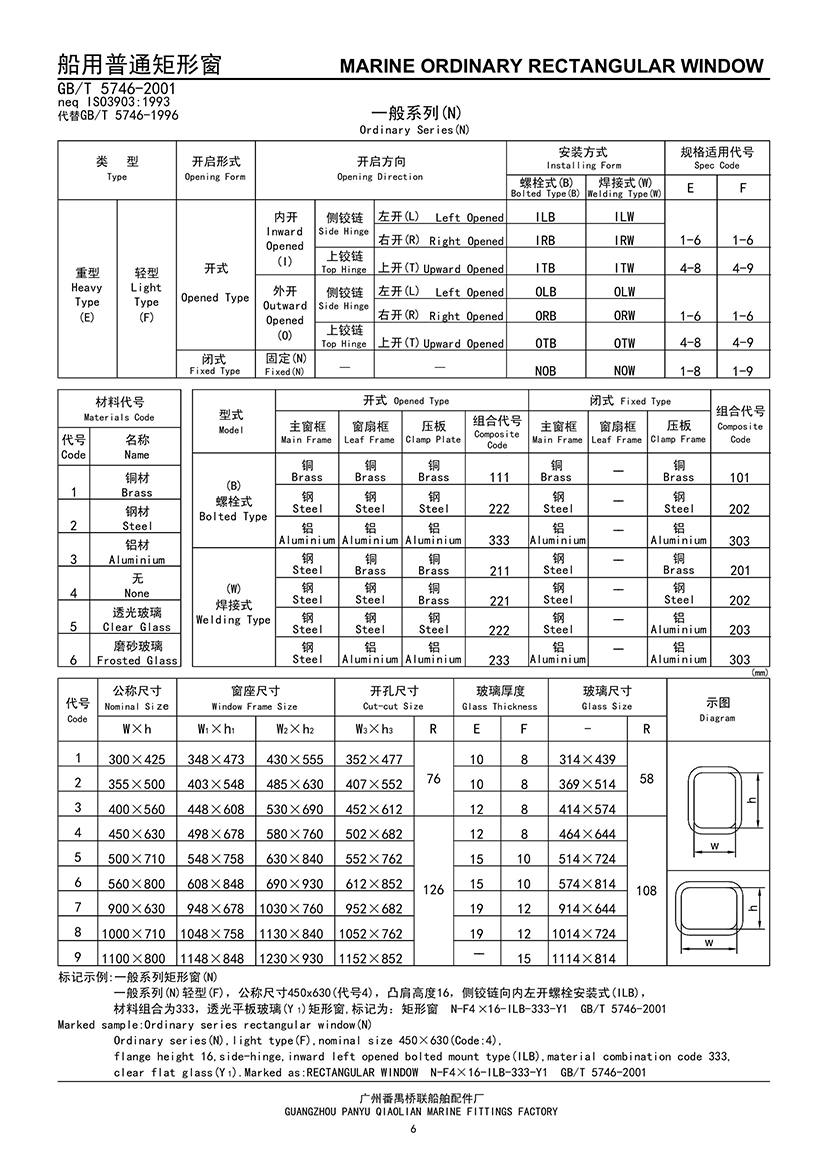 船用焊接安裝式普通矩形窗