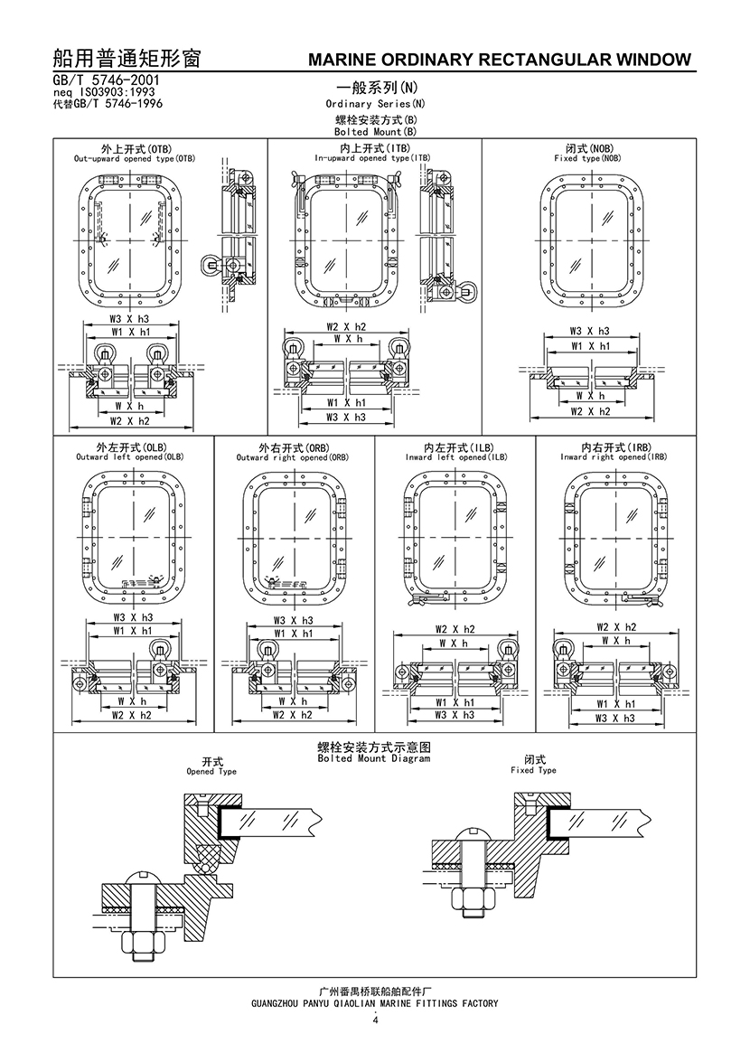 船用螺栓安裝式普通矩形窗