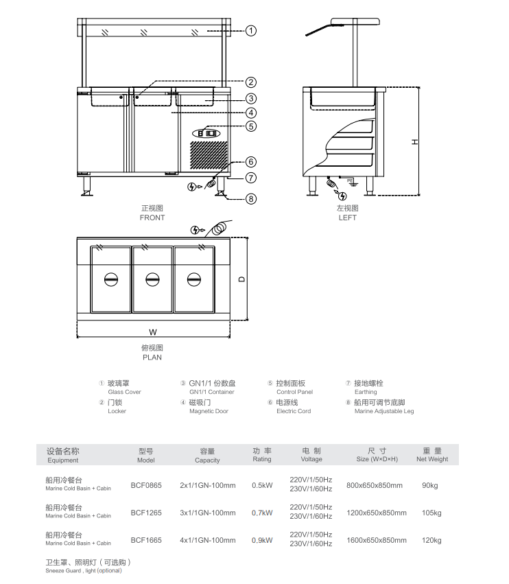 類型: 船用冷餐臺 尺寸: 800×650×850mm