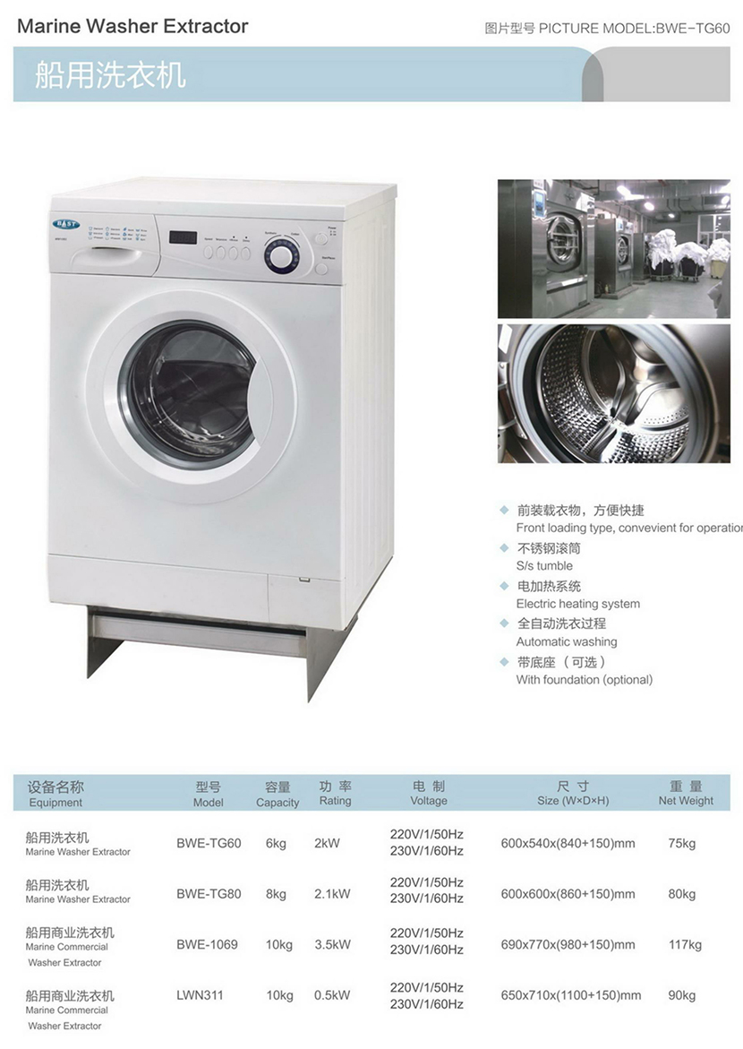 類型: 船用洗衣機 尺寸: 600×540×(840+150)mm