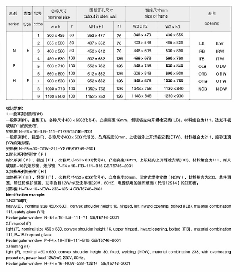 | 船用圓角固定式耐火窗 | |||