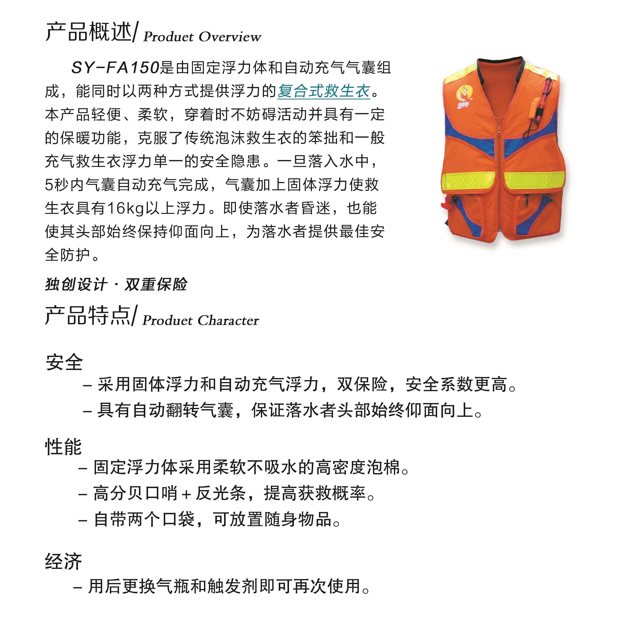 充氣時間: ≤5s 形式: 自動充氣氣囊9kg